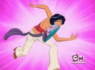 - Goof: When the girls are caught by Miss Vanity and Sam asks what her problem is, the light and dark green colors of her catsuit are inverted.
