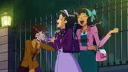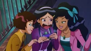 Although her friend and goes along with her antics, enjoying causing problems and one uping people, Caitlin isn't always seen with Mandy. And at one point, even wanted to hang out with Samantha when she started getting more popular than Mandy. In "Totally Spies! The Movie", Caitlin was seen carrying Mandy's shopping bags. Though she does seem to enjoy her company. Both Caitlin and Dominique didn't appear again after graduating, were not mentioned by either Mandy nor the spies. However, both Caitlin and Dominique appeared in Season 7's episode "Undercover Supervillains", where they were hanging out with Mandy in London, laughing and taking selfies with her, meaning the three are still best friends even after going to different colleges.