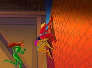 - Clover mocks/questions the villain’s clothing/fashion.