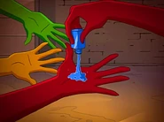 - Goof: When Rodney first picks Sam up, his hair is purple but later it is yellow.