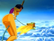 - Goof: When the girls arrive in a WOOHP plane after being WOOHPed by Jerry, there are a couple of times when part of Jerry's face is colored gray like his hair.