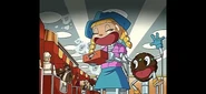 Clover becomes addicted to the cookies and is soon overweight. As the investigation and mission continues, Clover keeps eating the cookies, gaining over 300 pounds, and becoming an obese sumo spy in only 1 day. The girls discover that the villain is the creator of Passion Patties, Inga Bittersweet, who captures and subjects the trio to a feeding machine that force feeds them cookies in order to fatten them considerably. After years of resenting the Happy Girl scouts for kicking her out when she ate all the cookies she was supposed to sell, Inga's using her creations to take over the world.