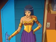- Sam does not wear her catsuit in this episode.