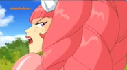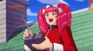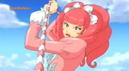 Angered, Wera then removes her disguise and reveals the pink weaponized dress she is wearing. She then begins to attack the girls with various weapons from her dress, including a chain-cloth whip, and flower-shaped shurikens.